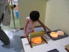ジャムおじさんのパン工場でパン生地を作るまねごとができます。(本物ではありません)