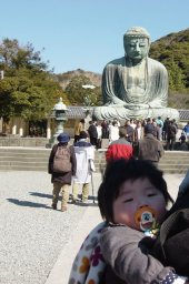 結婚式翌日、パパ方のじいじ、ばあばとご親戚と鎌倉の大仏を観光しました。つっきーは、こんなに大きな大仏をどう思ったのかな?